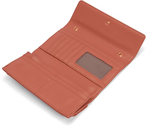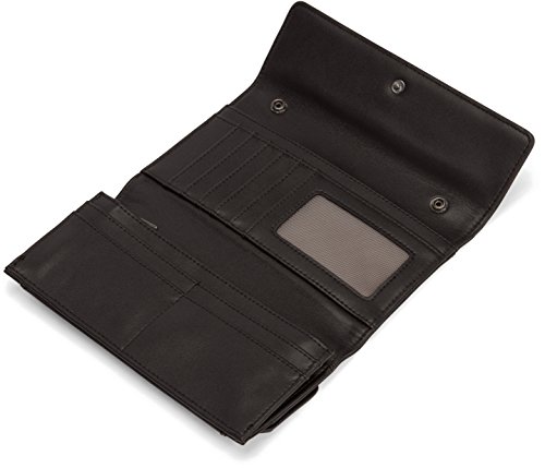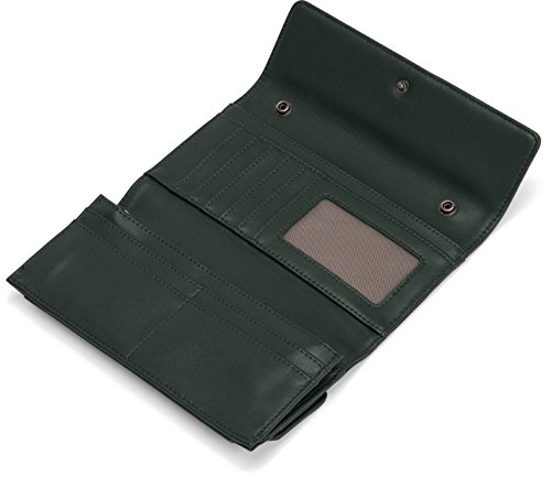 Product Description Wallet with removable strap. Two flaps in the front with snap closure. Bottom flap opens to a pocket. INTERIOR: 10 card slots, 4?bill compartments, zippered coin pouch. 100% recycled nylon lining. 0