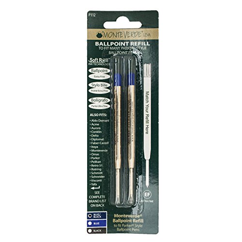 - Title : MONTEVERDE Ballpoint Refill to Fit Parker Style Ballpoint Pens, Extra Fine, Pack of 2, Blue/Black (P112BB)