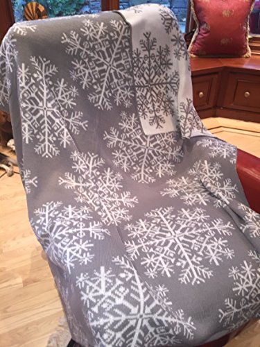 Gazebo Green Grey Winter Snowflake Reversible Knit Throw on Couch Blanket - 50" x 60"