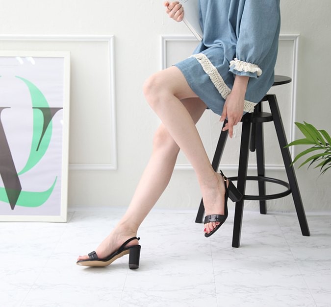 商品名:サンダル レディース 太ヒール スリングバック チャンキーヒール 本革 レザー 2018 夏 ファッション 靴 婦人靴
