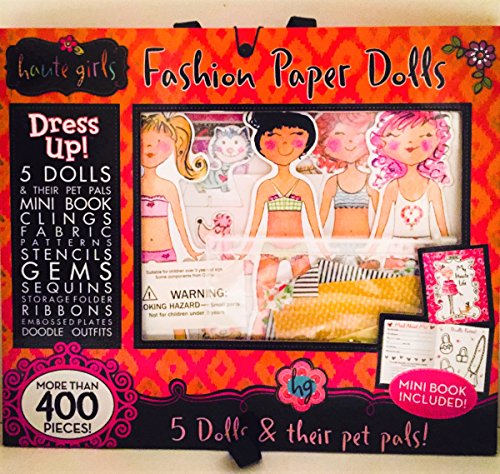 Product Description*400 Piece Fashion paper doll Set *5 Dolls and their pets *Stencils * Patterns *Fabric *Ribbons *Storage Folder *Gems0