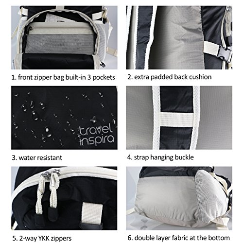 -. Brand : travel inspira -. Feature : Material: 210D Nylon ? Waterproof and Durable; / Colorful _ Easily to be recognized; / Foldable and collapsible design makes it work great for travel and even cycling / Store randomly: Zippered interior pocket for small one; / 2 Years GUARANTEE -. ProductGroup : Apparel -. ProductTypeName : LAGE -. Title : Travel Inspira Lightweight Packable Backpack Hiking Handy Foldable Camping Outdoor Cycling 25 Liters