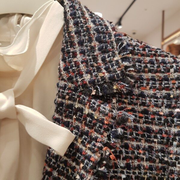고급스러운 트위드자켓으로 색감이 엄청예쁜 자켓입니다.청바지나 정장에도 잘어울리는 실용적인 자켓입니다.통통55는66을 입으셔야할거같아요~