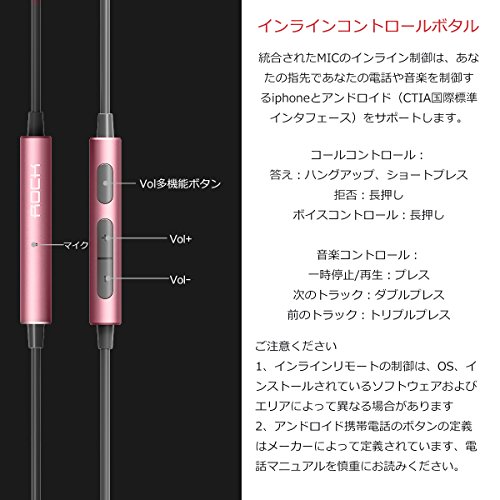 Rock space rock space 이어폰 고음질 중저음 커널형 리모콘 내장 마이크 입체성 통화 가능 스마트폰 (로즈고루도)