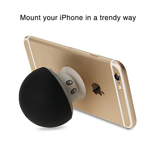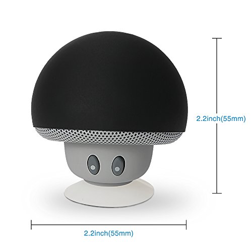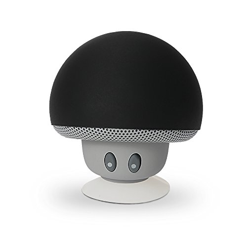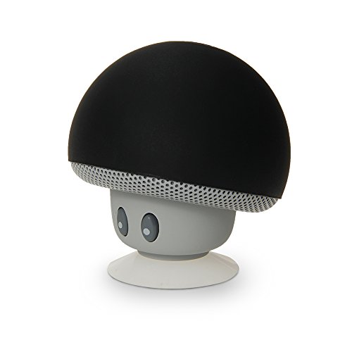 This speaker has a cute mushroom look. With a suction cup at the bottom, it can be used as a phone stand when placed upsidedown.