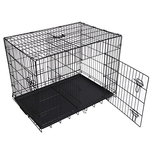 -. Title : Folding Double-door Metal Dog Crate with Divider Panel