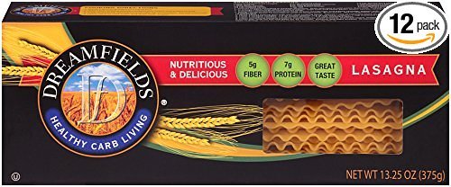 -. Binding : Grocery -. Brand : Dreamfields -. EAN : 0767387034348 -. Feature : Dreamfields has 5 grams of fiber and 7 grams of plant protein per serving / Dreamfields Helps you feel full with a balance of fibers and plant proteins / Dreamfields contains a Prebiotic fiber which helps promote healthy digestion / Dreamfields has all of the Taste and texture of traditional pasta -. Label : Dreamfields Pasta -. Manufacturer : Dreamfields Pasta -. NumberOfItems : 12 -. PackageQuantity : 12 -. ProductGroup : Grocery -. ProductTypeName : GROCERY -. Publisher : Dreamfields Pasta -. ReleaseDate : 2008-05-02 -. Studio : Dreamfields Pasta -. Title : Dreamfields Pasta Healthy Carb Living, Lasagna, 13.25-Ounce Boxes (Pack of 12) -. UPC : 767387034348
