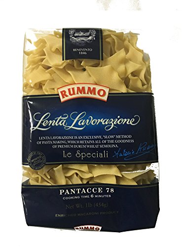 -. Feature : Rummo Lenta Lavorazione - Pantacce - 1LB Package (Pack of 5) / The Lenta Lavorazione method comes directly from the traditional and artisan way of making pasta. Careful research into the best ingredients, handled with care and without hurrying, respecting their needs and characteristics and following the rhythm of nature. / We think that pasta is the culture of our country. So we respect that very Italian pleasure of eating well, the well-known regional traditions and the lesser-known local delicacies. With Lenta Lavorazione®, an exclusive method which produces a peerless pasta, we want to tell the story of a voyage of rediscovery of the time of the artisan, epitomised by attention to detail / Try Italy's best pasta!