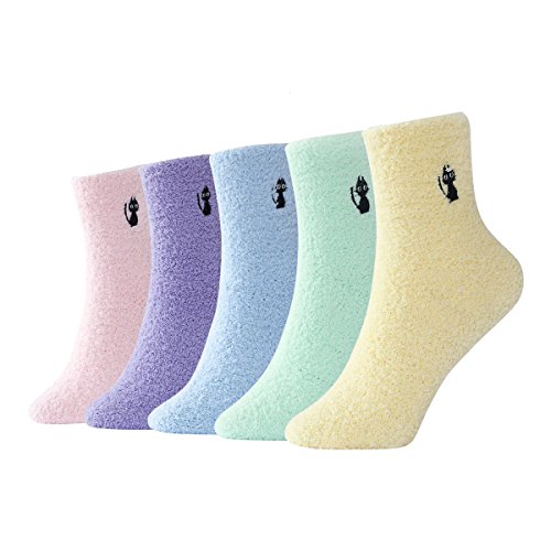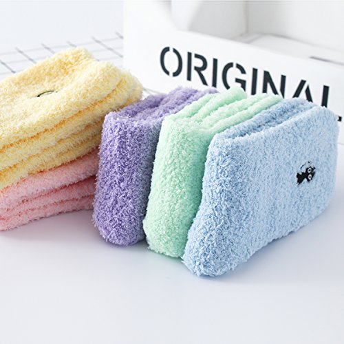 -. Feature : Super Soft Warm Microfiber Stretchy Fuzzy Socks - 6 Pairs - Value Pack. / Materials : 98% Polyester , 2% Spandex . / One Size: 9-11 (Fit Women's Shoe Sizes 6-10). / Super soft, fluffy relaxing feel comforts and warms feet for everyday activities and even during sleep in fall and winter; also wear chenille socks in air conditioned room in summer. / Machine Wash and Dry, Do Not Bleach, Do Not Iron, Do Not Use Softener, Tumble Dry Normal, Dry Clean and Solvent Except Trichloroethylene