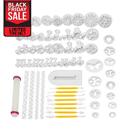 Pro Fondant Modeling Set (TM) comes in 68 assorted modeling tools and plunger cutters made of nontoxic, nonstick PP materials. It can be used to mold, shape, and decorate cake or clay craft. Pro Fondant Modeling Set (TM) Why Pro Fondant Modeling Set (TM)? - 68 different shapes and sizes of fondant tools - Comfortable grip and nonstick surface - FDA-approved and BPA-free PP material - Multipurpose easy cleaning tool set Professional Decorating Tools - Guaranteed! This decorating kit comes in 8 modeling tools, 54 various shapes and sizes of plunger cutters, 4 layering, 1 rolling pin, and 1 cake smoother. The 8 modeling tools consist of: - Bone tool - Shell and blade tool - Ball tool - Scallop and comb tool - Serrated and tapered cone tool - Tapered cones 5/6 star tool - Bulbous cone tool - Flower leaf shaper tool The smooth surfaces of these fondant tools are nonstick, while the handles are truly convenient to use. These modeling tools can be used to mold, shape, and cut the fondant, sugarcraft, gum paste, marzipan, and even clay craft too. You can create beautiful flowers, leaves, ribbons, stars, and butterflies shape in different sizes with the plunger cutters. This fondant kit is completed with 4 layering, a rolling pin, and a cake smoother. These decorating tools are the perfect handy pieces of equipment for adding special effects, details, and finishing touches to any detail cake decorations. What are you waiting for? Place your order NOW while stock lasts! Specification: Weight: 27.2 ounces Packaging dimension: 8.3 x 11 x 3.9 inches Color: White with yellow highlight Material: Polypropylene (PP) Set of: 68 pieces (c) Pro Fondant Modeling Set (TM) - All Rights Reserved 0