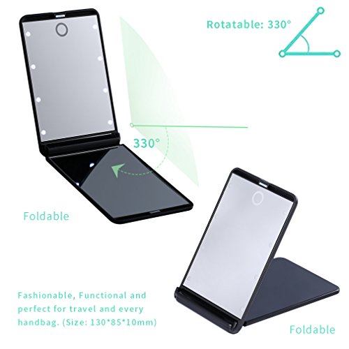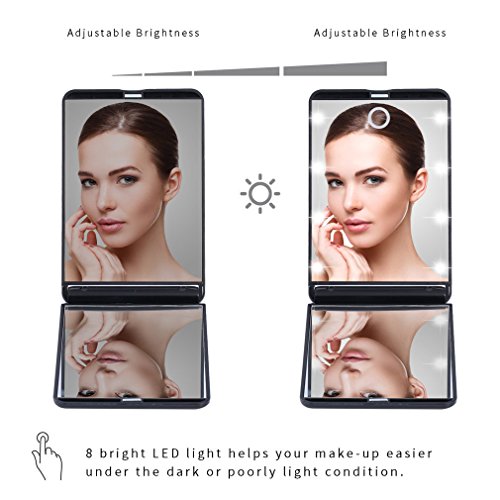 DOUBLE PANEL AND MAGNIFICATION VANITY MIRROR: provide a wide-angle viewing for you to see clearly your facial features and make a more perfect makeup with each detail,330°free rotatable,Fold it like a book when not using to protect it away from the dust or other scratches