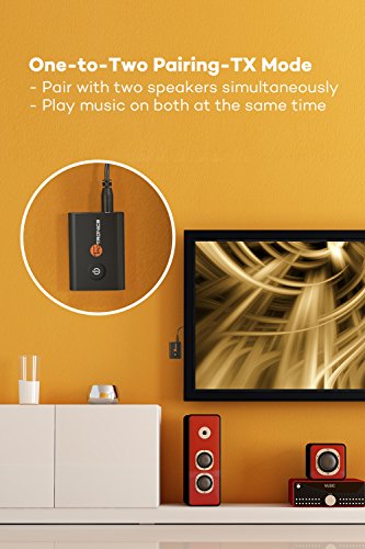 BLUETOOTH EVERYWHERE: In Transmitter mode (TX), turn a non-Bluetooth TV, PC, CD player, iPod, MP3 / MP4 into a Bluetooth transmitter while pairing with Bluetooth stereo. Receiver mode (RX): Ideal for home or vehicle music streaming sound system.