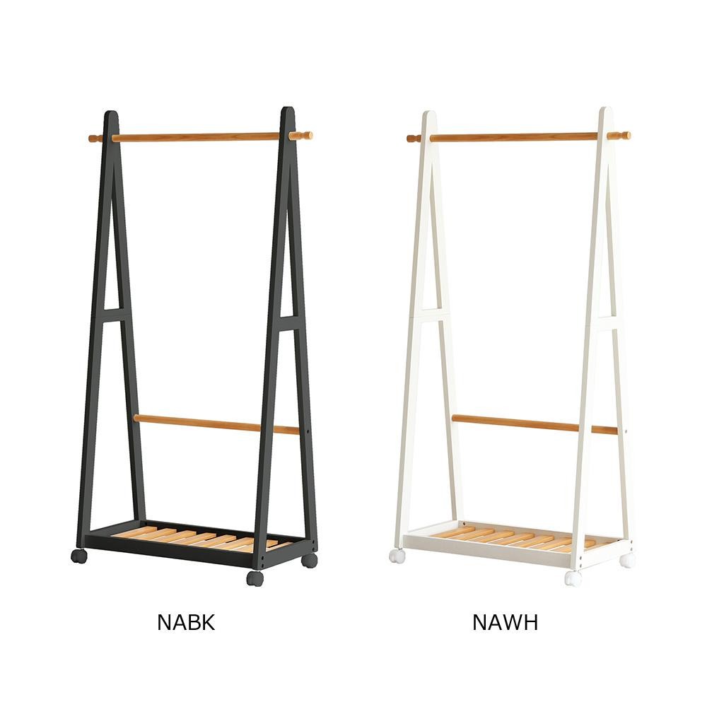 天然木素材のハンガーラックです。キャスター付きで、簡単に移動できます。