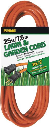 Prime Wire & Cable EC481625 25-Foot 16/2 SJTW Lawn and Garden Outdoor Extension Cord, Orange