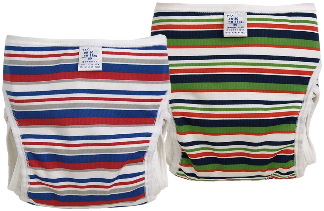 Japanese-made 2-Pack Multi-Striped diaper cover (behind closing) 90cm Blue JF205B