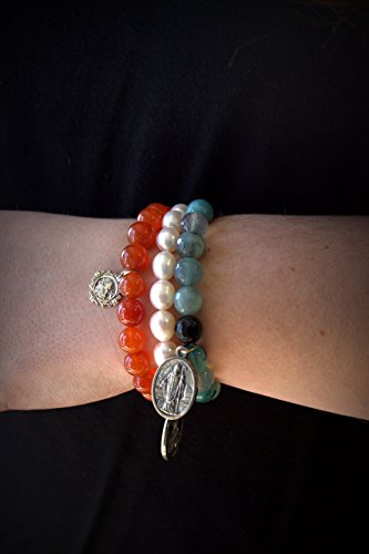-. Title : 1 Carnelian Stacking Stretch Bracelet, St. Anthony Patron Saint Vintage Medal Bracelet