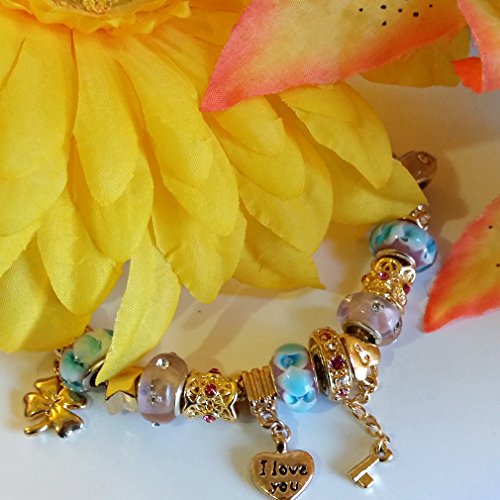 -. Feature : Perfect as a valentine, birthday, anniversary and mother's day gift. / Beautiful Murano style glass beads, crystal and unique charms. / Compatible with style jewelry. / Add additional charms and/or beads to celebrate milestones / Fits 5.5" to 8" wrists. Check PRODUCT DESCRIPTION below for all measurements.