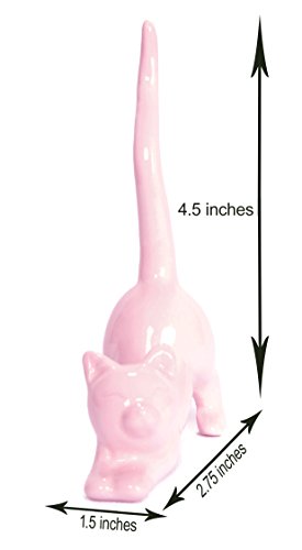 Cat Ring Holder, Cute Pink Ceramic Engagement and Wedding Ring Holder, Measures 2.75"W x 4.5"H x 1.5"D