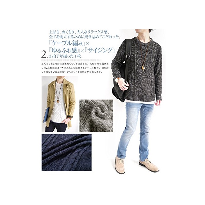원본상품명: (モノマト) MONO-MART フィッシャマン ニット セタ クルネック 起毛 ゆる ケブル編み 長袖 メンズ グレ Mサイズ