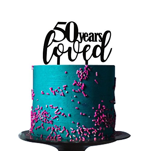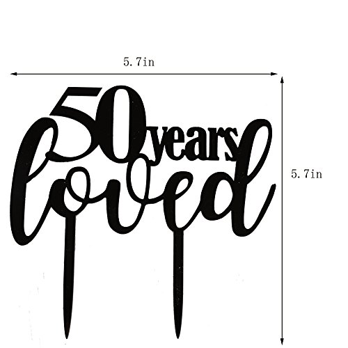50 years loved cake topper Black acrylic for 50th birthday,anniversary or friendship cake party cake decoration