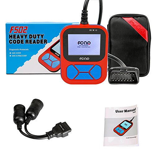 -. Feature : F502 is a small Heavy Vehicle Code Reader which researched and developed by Fcar. It is with LCD true color display and can support heavy duty truck standard protocols. With high quality and good performance,this code reader can enable vehicle technicians to diagnose heavy duty trucks more easily and quickly / Support vehicles that compatible with standard protocol of heavy-duty trucks (J1939 and J1708) / Be connected to OBD16 via diesel 6PIN and diesel 9PIN,Scan truck ECU components to read all DTC, clear Code and show live data / The components are including Engine, Transmission, Brake, Turbo charger, Axle, Power unit, Trailer, Instrument cluster and much more / Language: English and Spanish, language can be easily switch from the menu