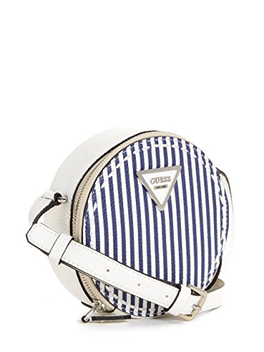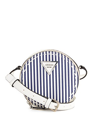 This round-about mini crossbody bag packs a trendy punch with the striped faux-leather pattern, a wraparound zipper closure, adjustable strap and an interior slip pocket.