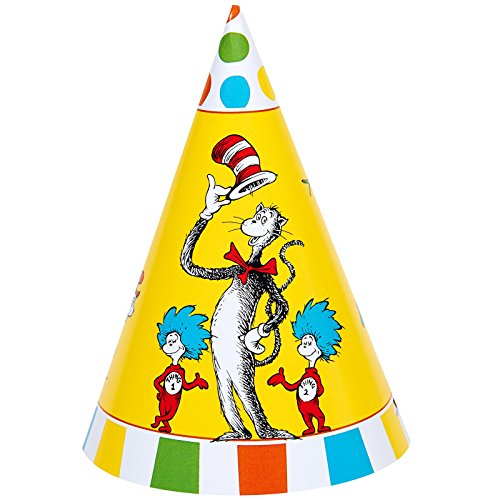 -. Feature : Includes (8) cone hats with elastic strings. Some assembly required. / Add matching tableware, favors, accessories, or a party kit bundle to complete your Dr. Seuss party. / Features favorite Dr. Seuss characters such as the Cat in the Hat and Thing 1 and Thing 2. / Great for kids parties, graduations, going away parties, farewell and retirement parties! Perfect for your childs birthday, sleepover or theme party!