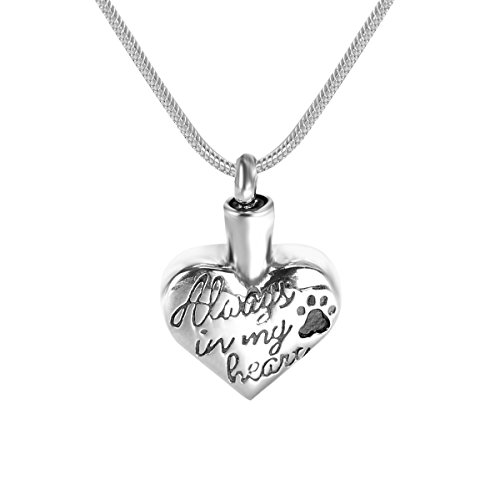 GIONO Cremation Jewelry "Always in my heart" Puppy Dog Paw Pet Memorial Urn Pendant Necklace