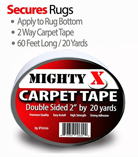 ✅ REGISTERED BRAND ON AMAZON: Mighty X Double Sided Carpet Tape (One Roll - 20 Yards / 2 Inches) -- Stops Rugs from Slipping or Sliding -- Best Deal on Amazon (Compare Price and Length)