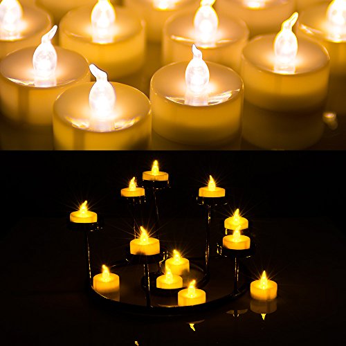 Realistic light,ECOFRIENDLY, SMOKE FREE - These Real light flameless LED tea light candles are completely environmentally friendly,energy saving. They have ZERO carbon emission and have long battery lives.Flashing. Easy to use, simply switch On / off on the bottom to control the candle light.