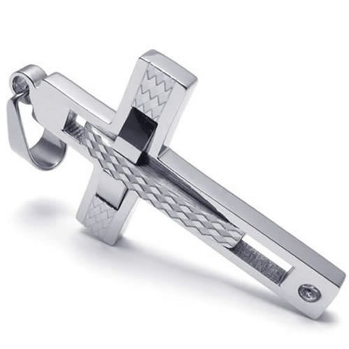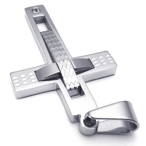 -. Title : KONOV Polished Stainless Steel Cross Mens Womens Necklace Pendant, Silver, 24 inch Chain