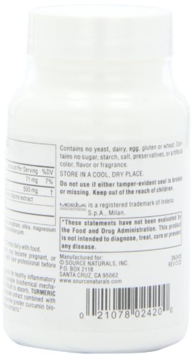 ReleaseDate : 2017-10-04 Studio : Source Naturals Publisher : Source Naturals Binding : Health and Beauty Product Description Curcumin from turmeric supports the healthy inflammatory response through an array of complex biochemical mechanisms. Because curcumin is difficult to absorb, Turmeric with Meriva uses a specialized extract combined with phosphatidylcholine to help generate greater curcumin bioavailability than common turmeric extracts. Meriva is a registered trademark of Indena S.p.A., Milan. 0