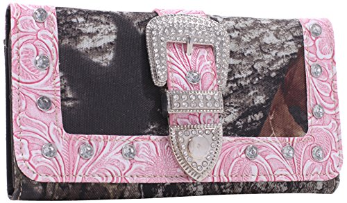 -. Binding : Sports Apparel -. Brand : Emperia -. Department : womens -. Feature : Tri-folded Mossy Oak buckle ladies wallet with rhinestones / It features zipper pocket, cash sleeves, credit slots, and ID window / A matching checkbook holder included / Exterior pocket on back for extra storage -. Label : Anne Sophie Inc -. Manufacturer : Anne Sophie Inc -. ProductGroup : Sports -. ProductTypeName : OUTDOOR_RECREATION_PRODUCT -. Publisher : Anne Sophie Inc -. Studio : Anne Sophie Inc -. Title : Emperia Women's Julia Mossy Oak Ladies Tri-folded Buckle Wallet with Rhinestones