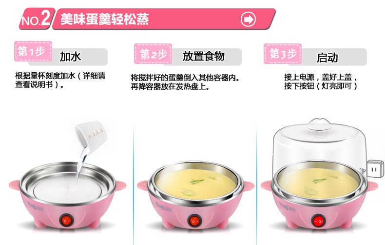 2)Do as the instruction says,add the water according to the egg degree of ripeness