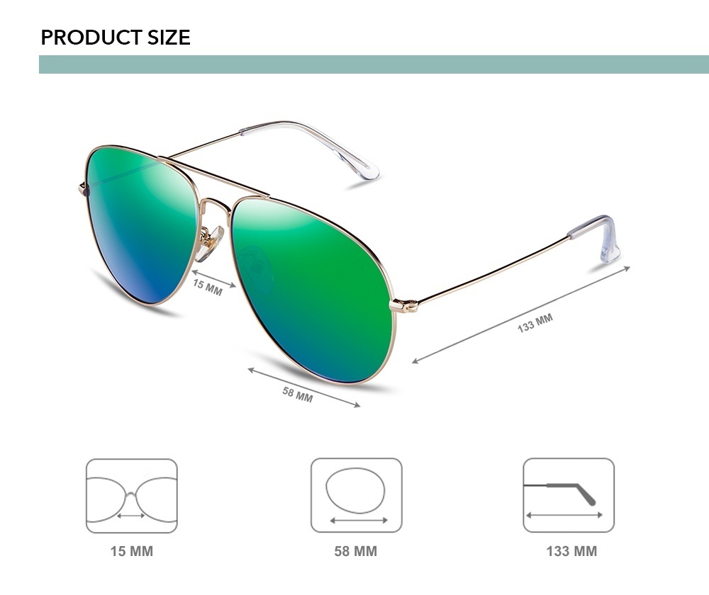 One of the most iconic sunglasses model in the world brought to you by QINA. These sunglasses feature a PILOT shape suitable for both Men & Women with SILVER frames and a trendy GREEN color and POLARIZED lenses offering classic finishing touches, an anti reflective coating & 100% UV400 protection to shield eyes from the harmful effects of sun damage. Comes with a FREE colorful premium and unique designer bag & a cleaning cloth.
