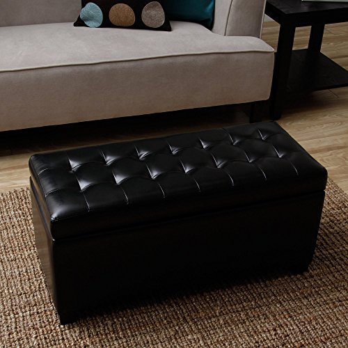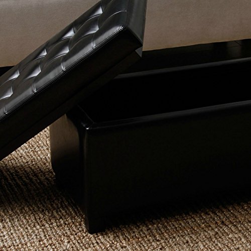-. Feature : Reduce clutter by storing your magazines, books, controllers, blankets, toys and other accessories so your living room stays neat and tidy. / Multi-functional, stylish and contemporary ottoman is an elegant addition to either your living room or bedroom, and allows you to group two together for a decorative statement. / Add a small tray to the top and you instantly have a coffee table a place to set your beverage or snacks. / The tufted padded cover provides comfort, allowing the piece to be used as an ottoman for putting your feet up after long workdays and as extra seating to accommodate expected company or unanticipated guests. / Made from premium quality solid wood, this timeless furniture is expertly crafted for long-lasting use. Dimensions : 17 inches high x 36 inches long x 15 inches deep