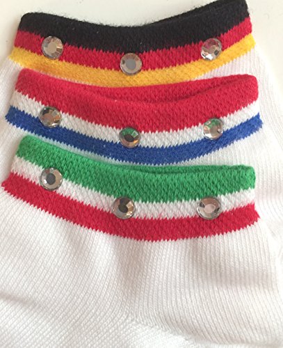 3 pairs of white socks included (one of each color stripe variation on top cuff)