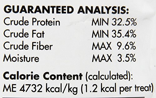 Guaranteed Analysis: Crude Protein 32.5% (minimum); Crude Fat 35.4% (minimum); Crude Fiber 9.6% (maximum); Moisture 3.5% (maximum)