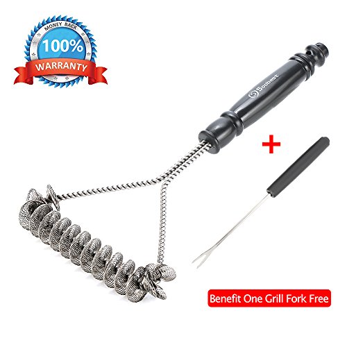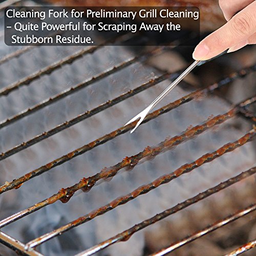- 12 Inch Grill Cleaner with Sturdy Handle: Crafted with stainless steel and a high quality plastic handle, the bristle free grill brush cleaner and cleaning fork will be long-lasting companions for a durable and effortless usage. Unlimited 1 Year 100% money back guarantee.