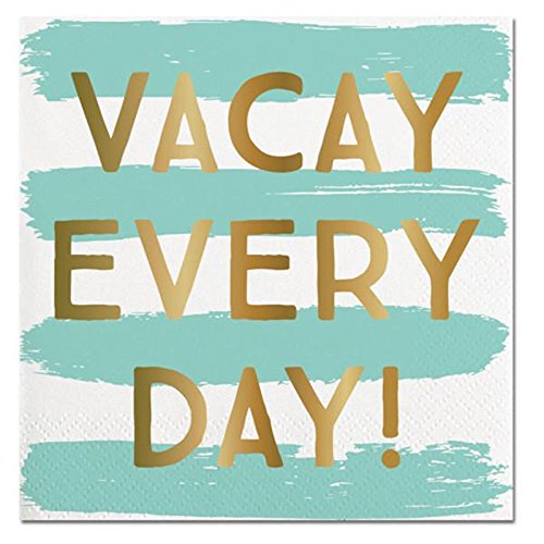 -. Title : Slant Aqua Blue and White Stripe "Vacay Every Day" Paper Beverage Napkins