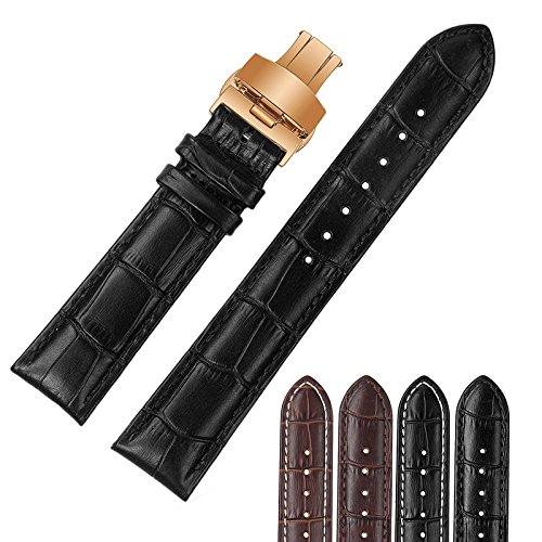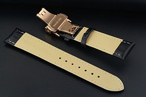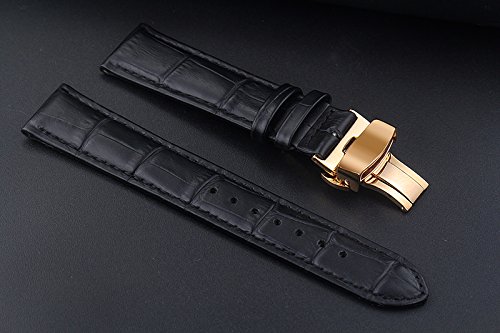-. Title : 16mm Black Replacement Deployment Watch Straps/Bands Genuine Calf Leather Regular Length Luxury Handmade Rose Gold Deployment Clasp