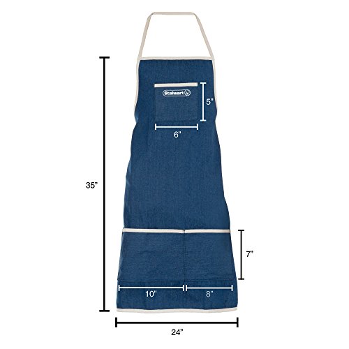 - MULTIPURPOSE APRON- The Stalwart Denim Shop Apron comes with 3 pockets for storing your pens, tools, and accessories without feeling weighted down. The heavy-duty material allows these utility aprons to be used for a variety of activities like painting, woodworking, crafts, mechanic and auto work, and more!