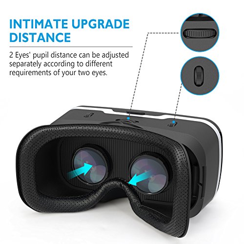 SILMIEN 3D VR Glasses Upgrade Replaceable Leather Patch Even for Near-Sighted Adjustable Pupil and Object Distance Separately Portable Virtual Reality Headset Movies and Games for IOS and Android