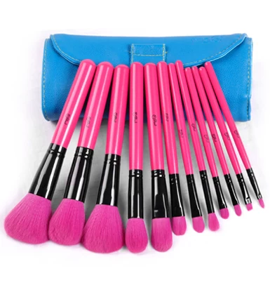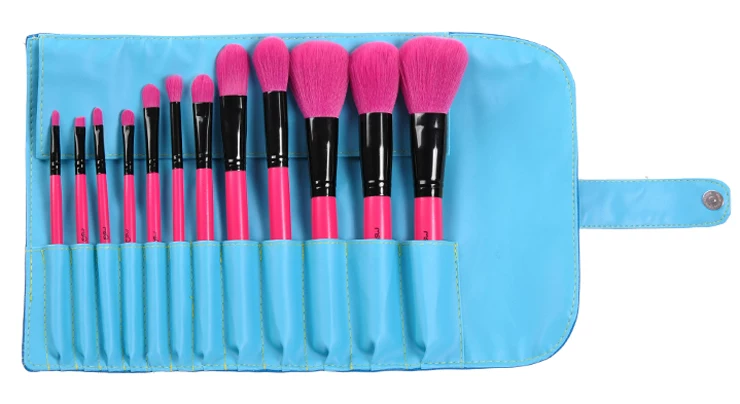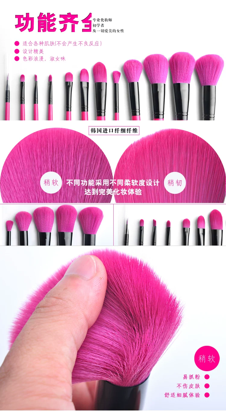 名称12支桃红色化妆套装刷具优质皮套包