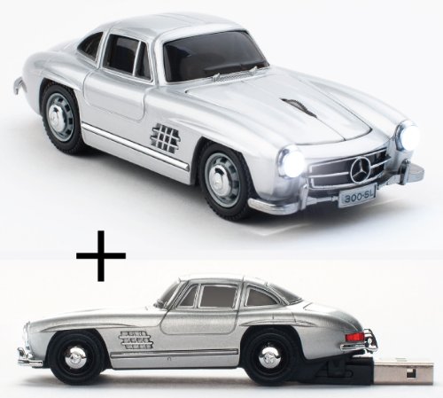 Click Car CLICK-BENZ-BUNDLE Mercedes-Bens 300SL Wireless Optical Mouse and 4GB USB 2.0 Stick Bundle Kit, Silver