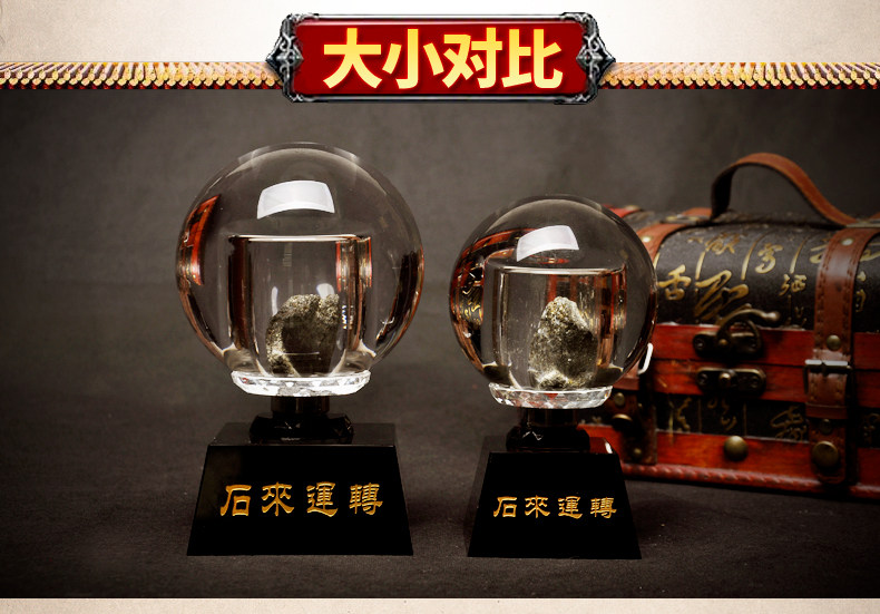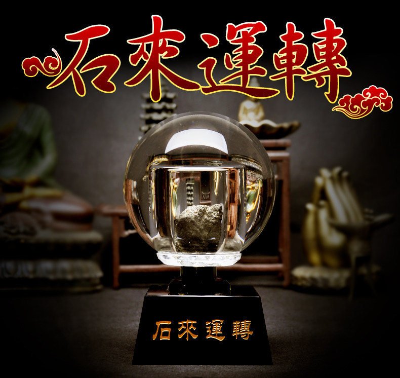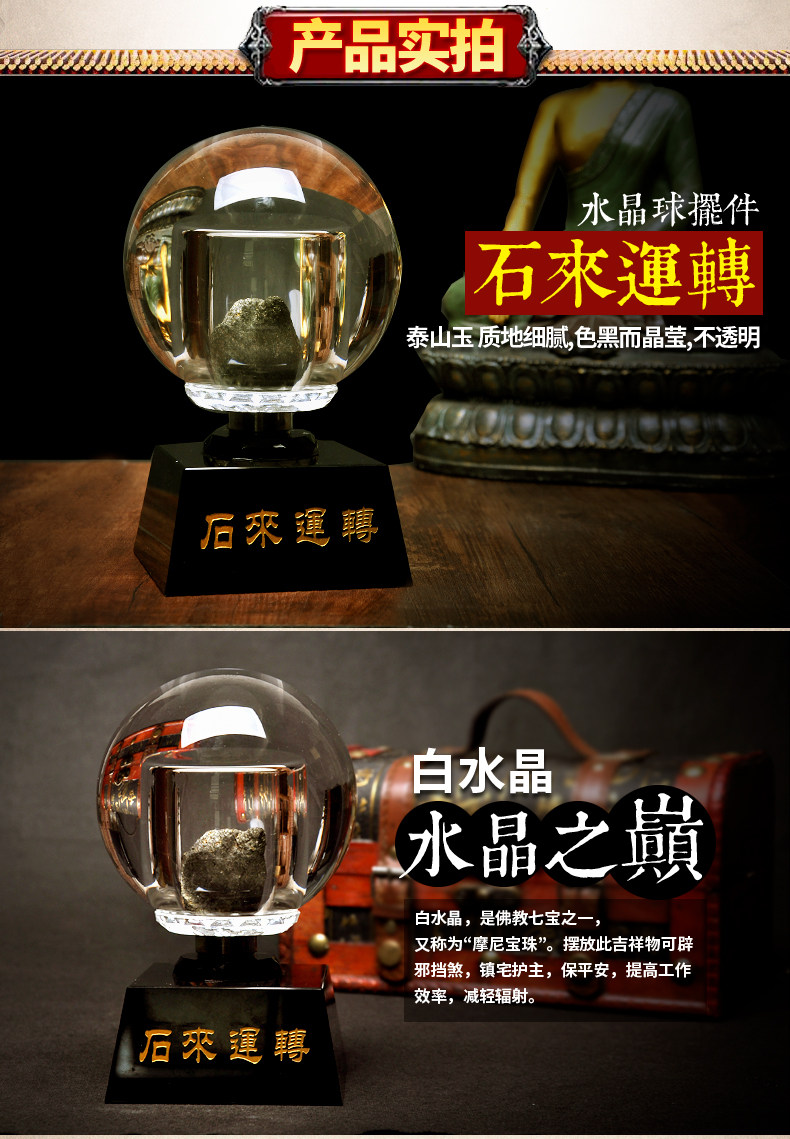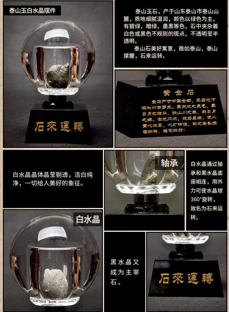 祥云阁泰山墨玉石来运转摆件家居办公桌面摆件水晶球摆件白水晶球