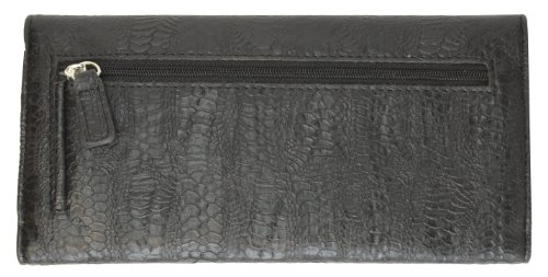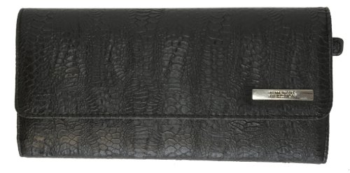 Binding : Apparel Product Description This clutch wallet by Kenneth Cole Reaction features 3 large slip pockets, 9 credit card slots, 1 ID window and a small kiss-lock coin purse within a slip pocket. The wallet is fully lined and designed with a hidden magnetic closure. The Scaled Patent adds an extra touch of fashion to this classic tri fold wallet. Measures 8.5" x 4" x 1.25" 0