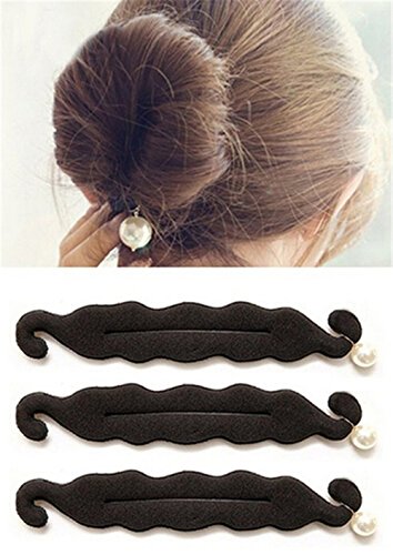 HAKDAY 3 PCS Magic Beauty Hair Hairstyle Foam Pearl Sponge Donut Maker Ponytail Bun Maker Twister,Black