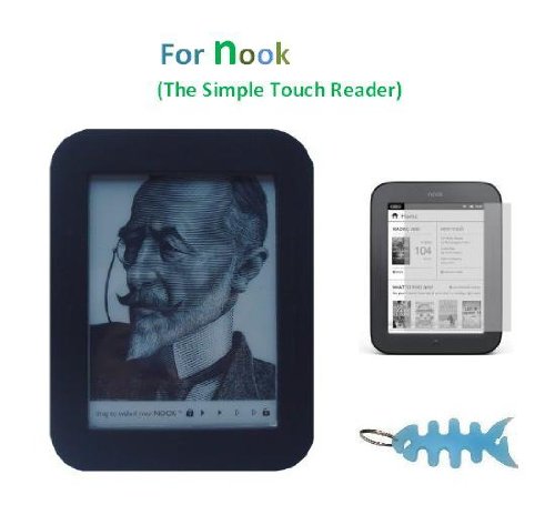 -. Title : Silicone Case (Black) with Screen Protector and Fishbone Style Keychain for Barnes and Noble Nook Simple Touch Reader (Latest Generation)