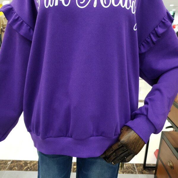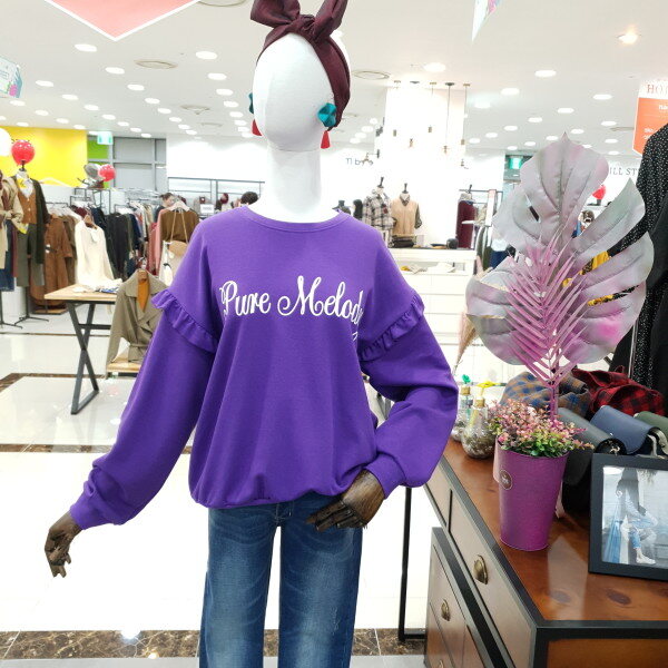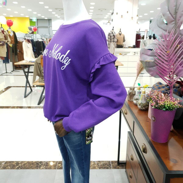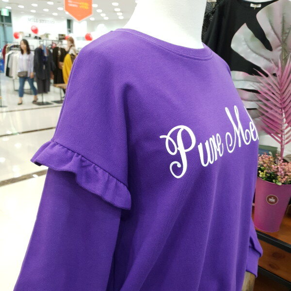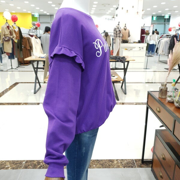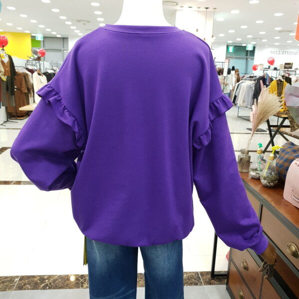 소매의 프릴이 넘나 사랑스러운 맨투맨 이예요.캐주얼하면서 여성스러운 느낌으로 연출하기 좋은 맨투맨이예요.스커트나 팬츠에 무난하게 잘어울리는 티예요.